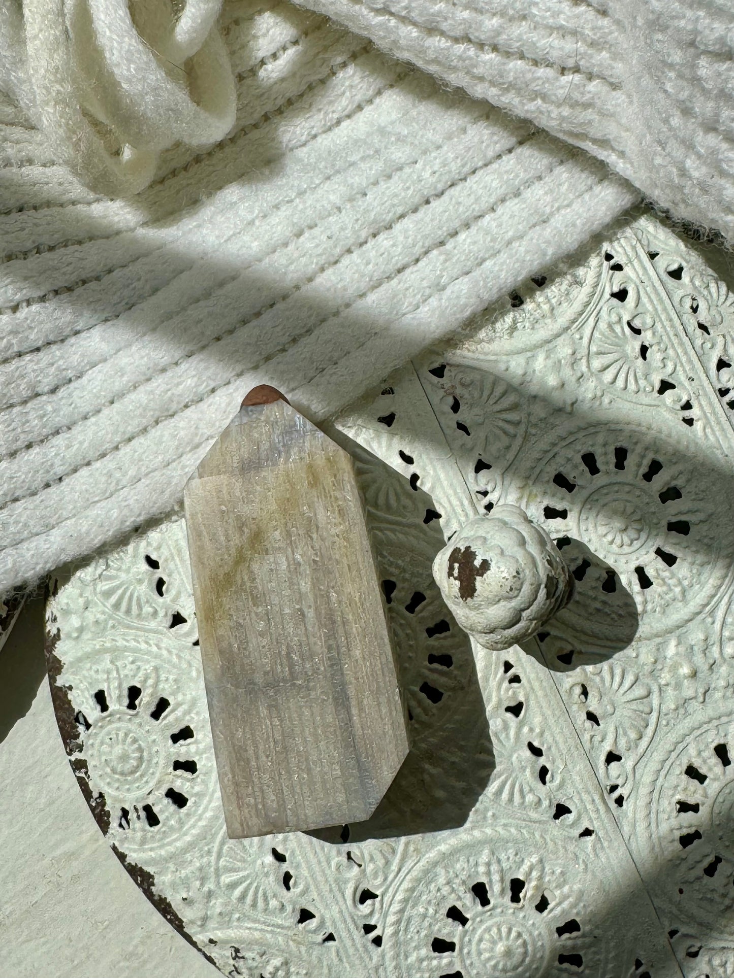 Keep in mind that every piece is unique, beautiful, and developed in Earth. Lining, cracks, raw spots, divots, druzy pockets - all of these are just part of the stone's personality and what makes it beautiful. We do our best to photograph each crystal from all angles so that you can clearly see what you are purchasing.