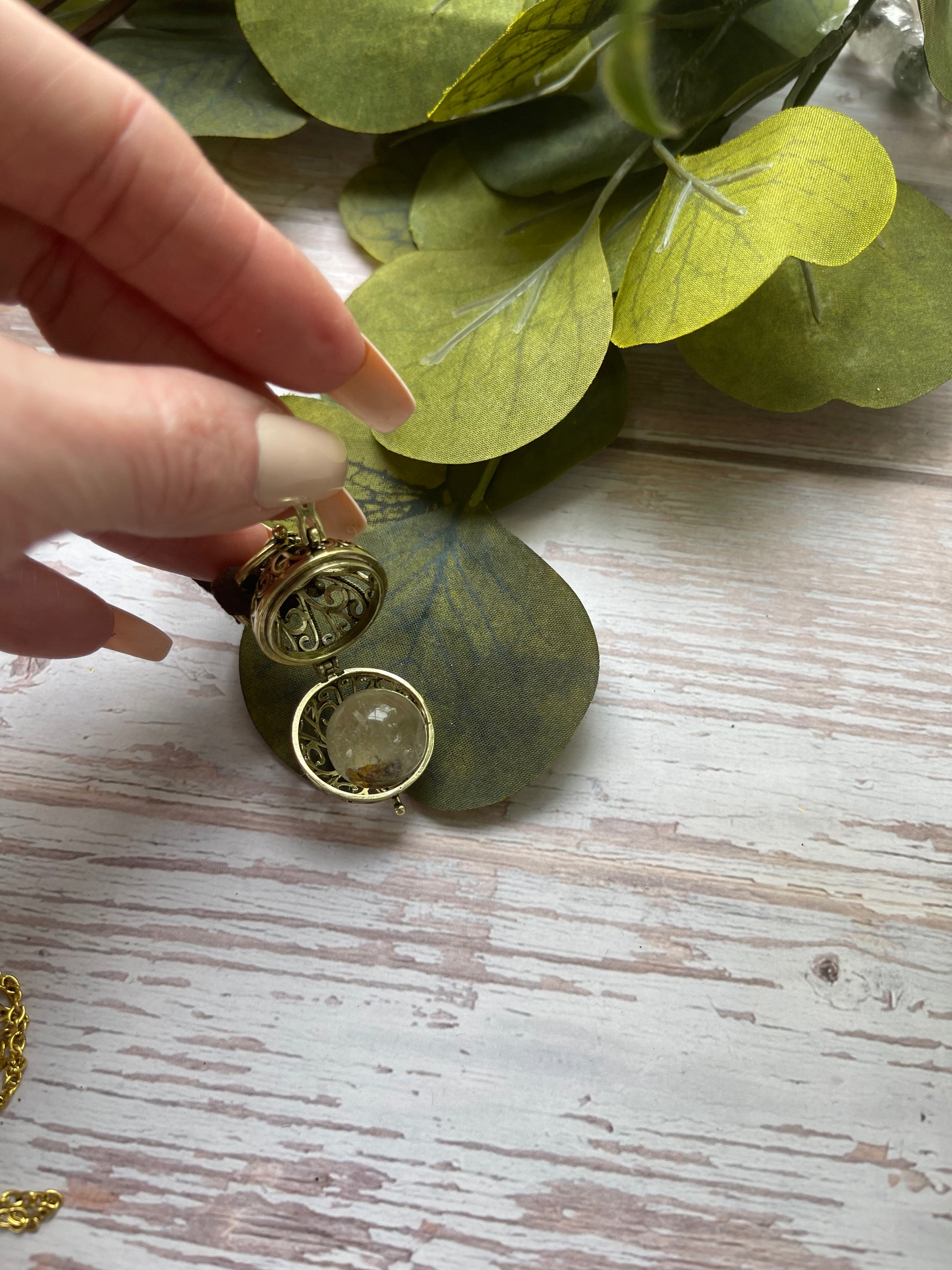 Enchanted Cage Necklace with Garden Quartz and Citrine Mini Spheres