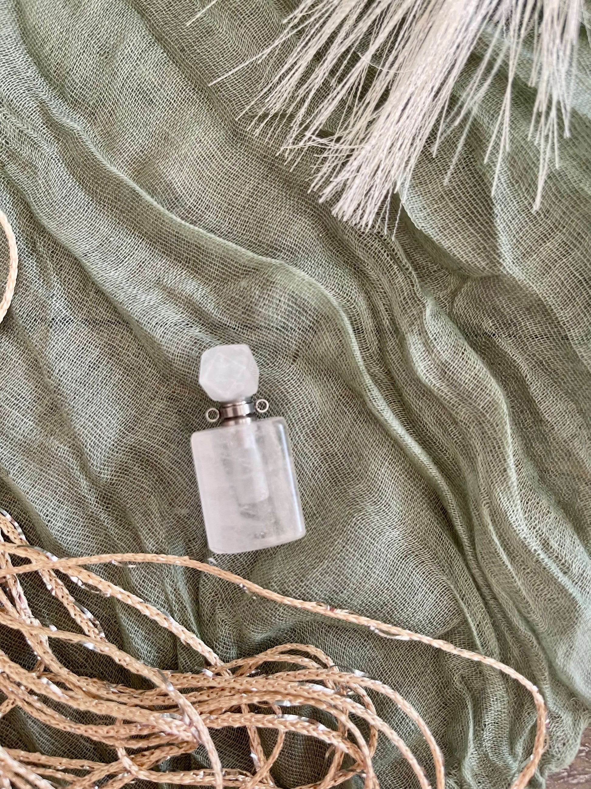 Add a touch of healing energy with this Clear Quartz Perfume Bottle. Twist top design allows for easy refill and personalization. Carry your favorite scent or essential oil wherever you go. Infused with the loving and healing properties of clear quartz. Perfect for pairing with other crystals and intentions to amplify them!