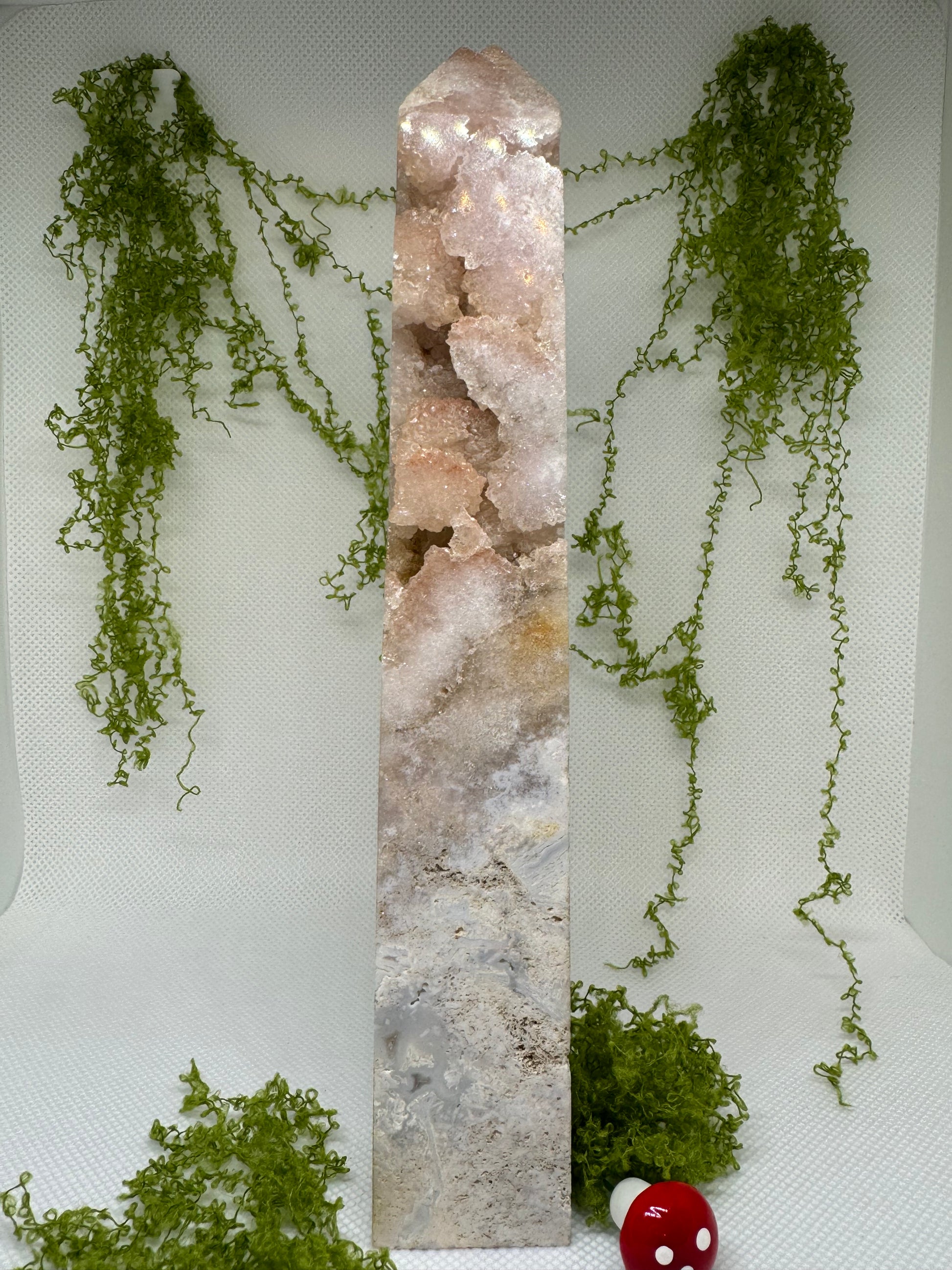 Whether displayed as a centerpiece in your home or office, used for meditation and energy work, or simply admired for its natural beauty, our Pink Amethyst Druzy Tower is a radiant symbol of tranquility and transformation. Embrace the healing energy of Pink Amethyst and invite a sense of calm and positivity into your life with this exquisite crystal masterpiece.