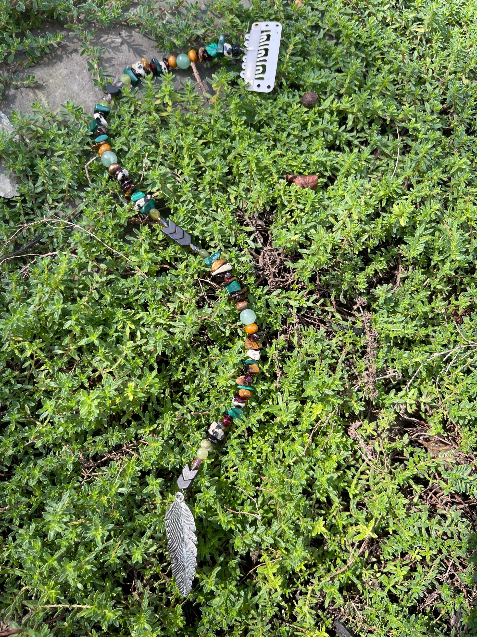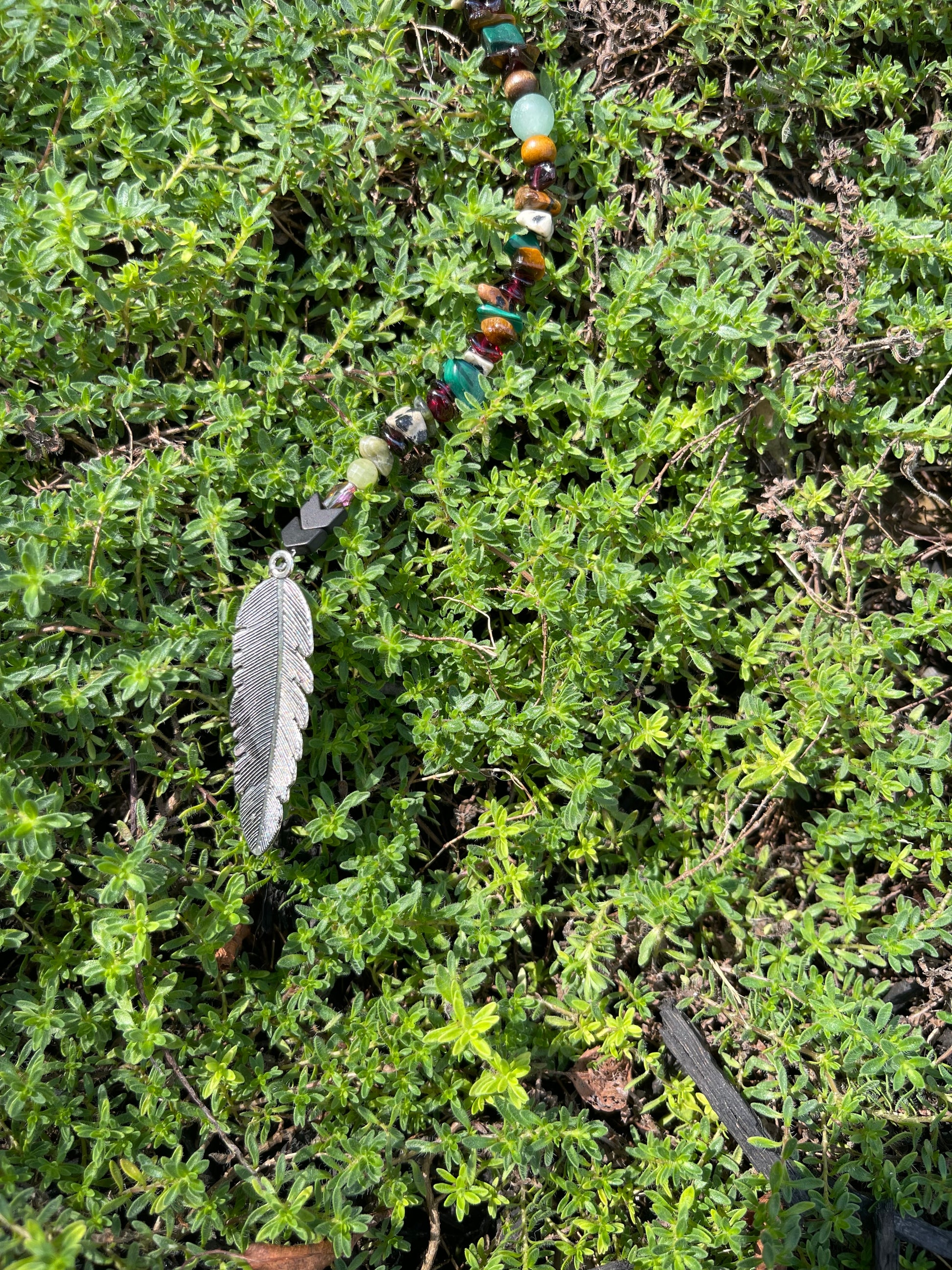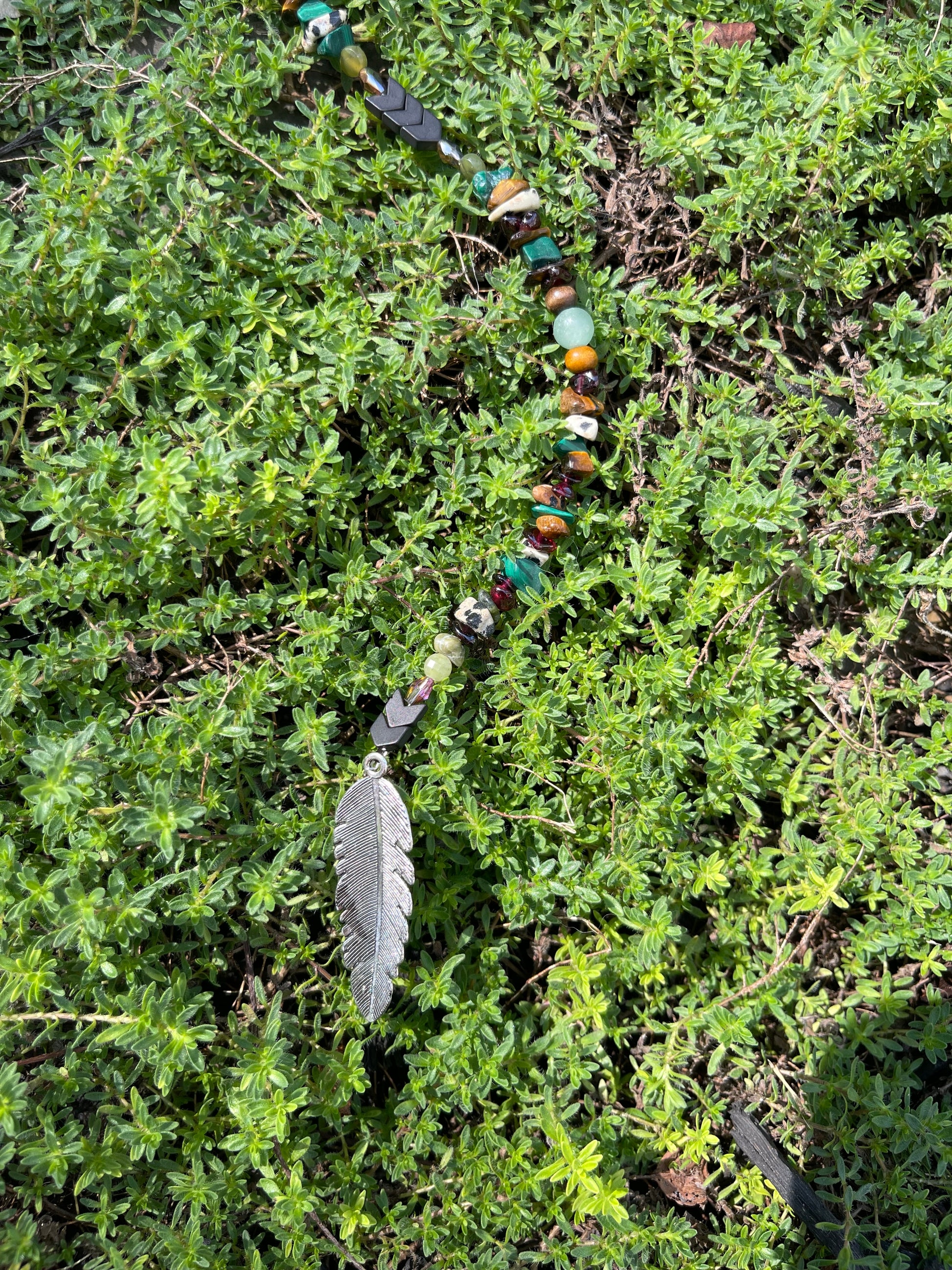 Each Feather of Change Hair Extension is handmade personally by me and includes Lava Stone - Malachite- Green Aventurine -Black Plated Hematite-Dalmatian Jasper-Garnet- Tiger’s Eye- Feather Charm. Great for change, good luck, protection, abundance, motivation, and more! Each will always include the crystals listed.