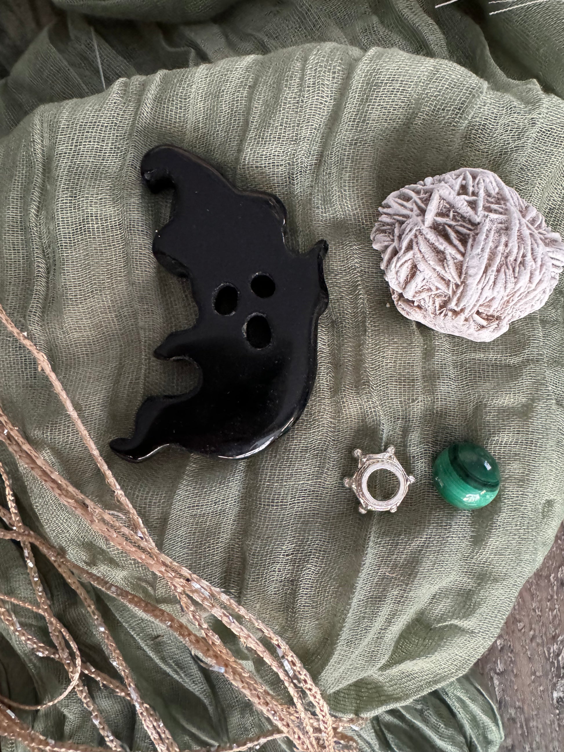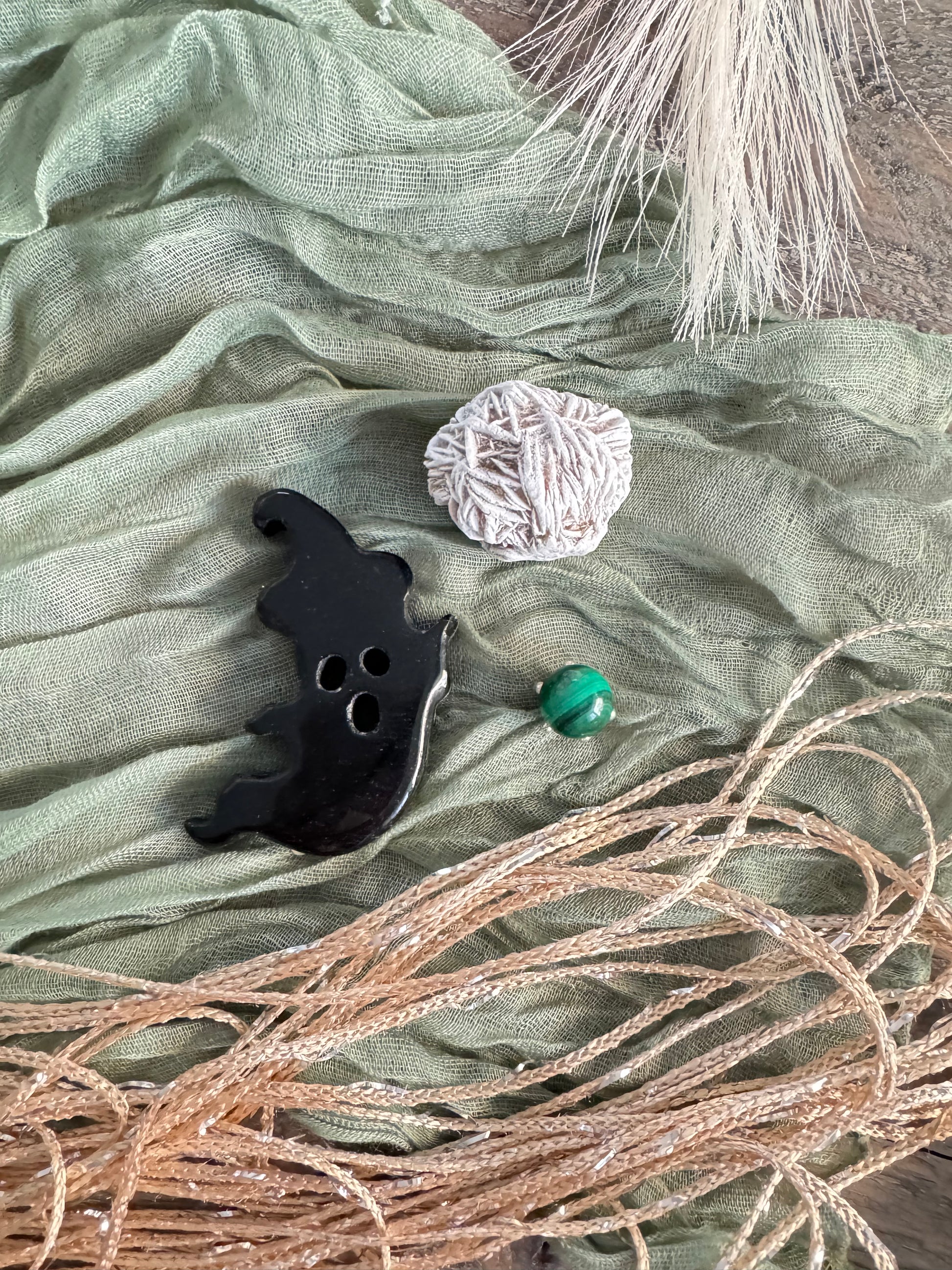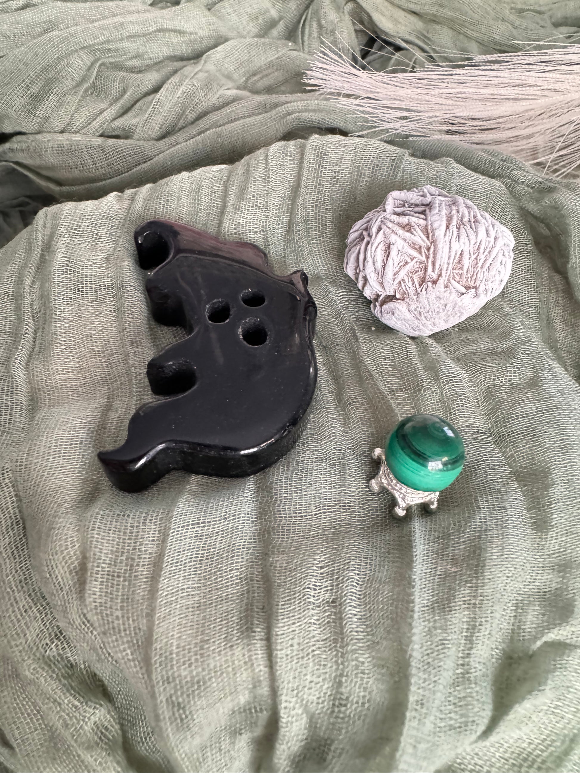 You must be a girlie of my own heart! Includes: black obsidian ghost, mini malachite sphere with crown stand, and a desert rose 🌹Â