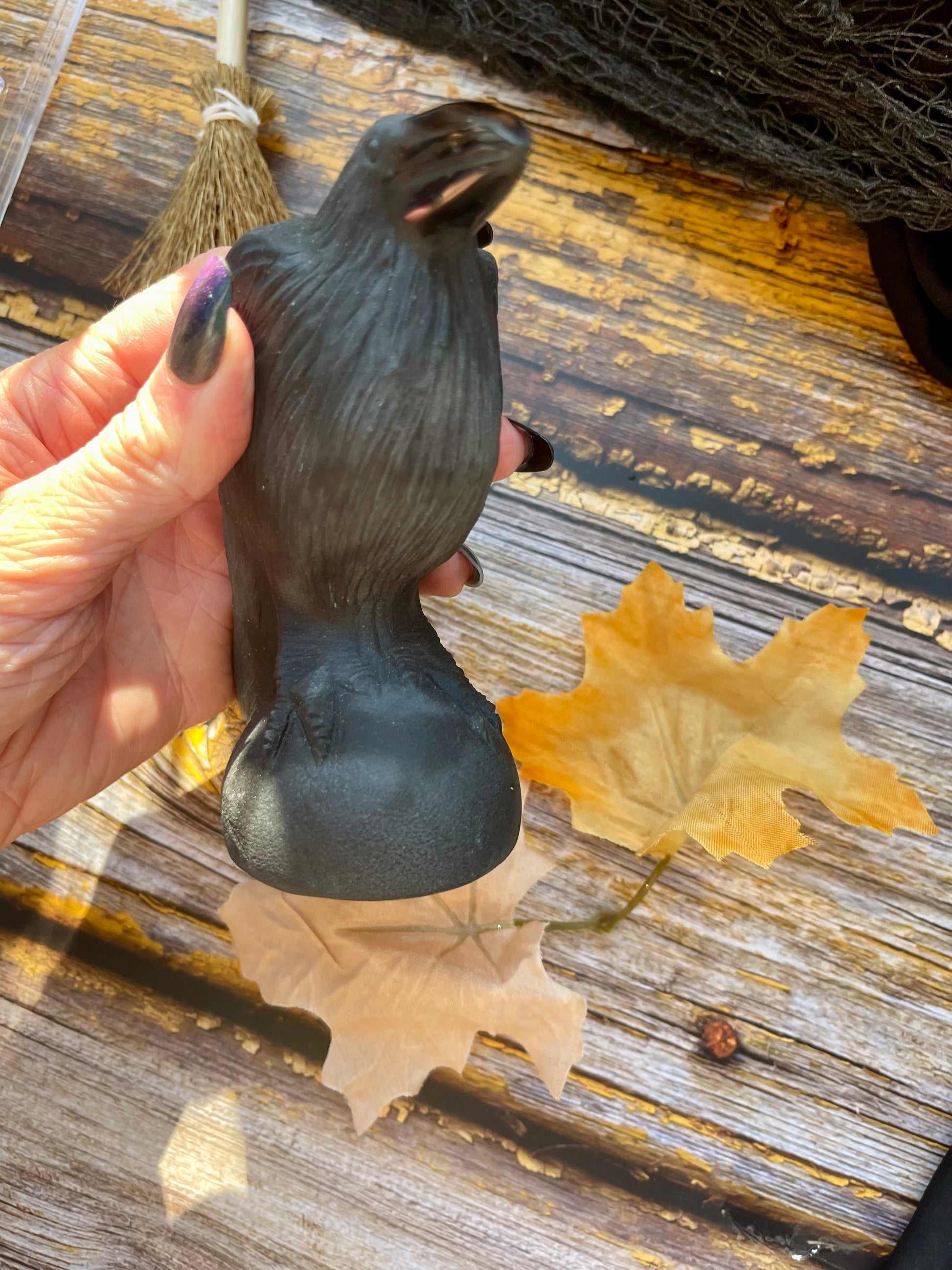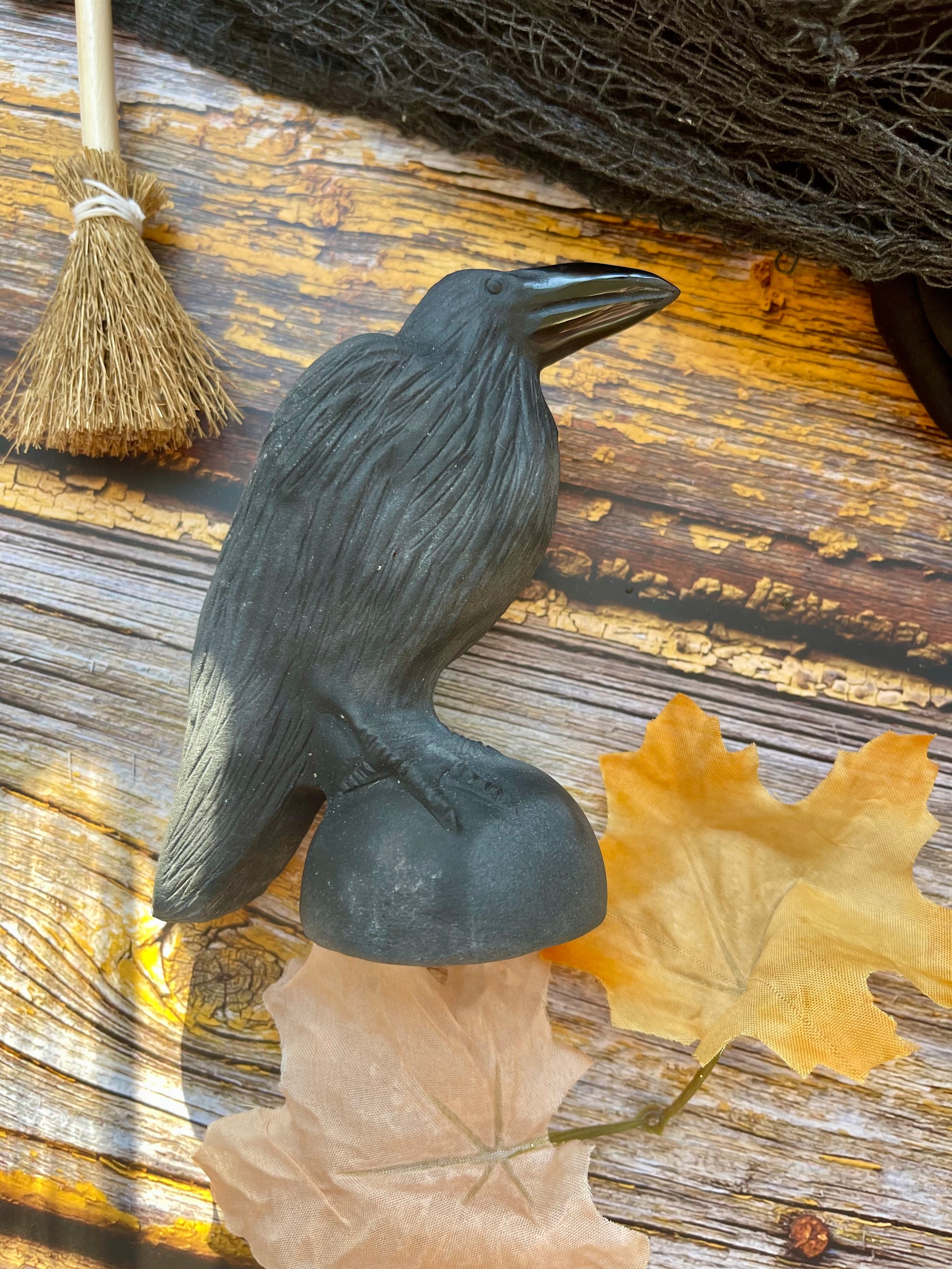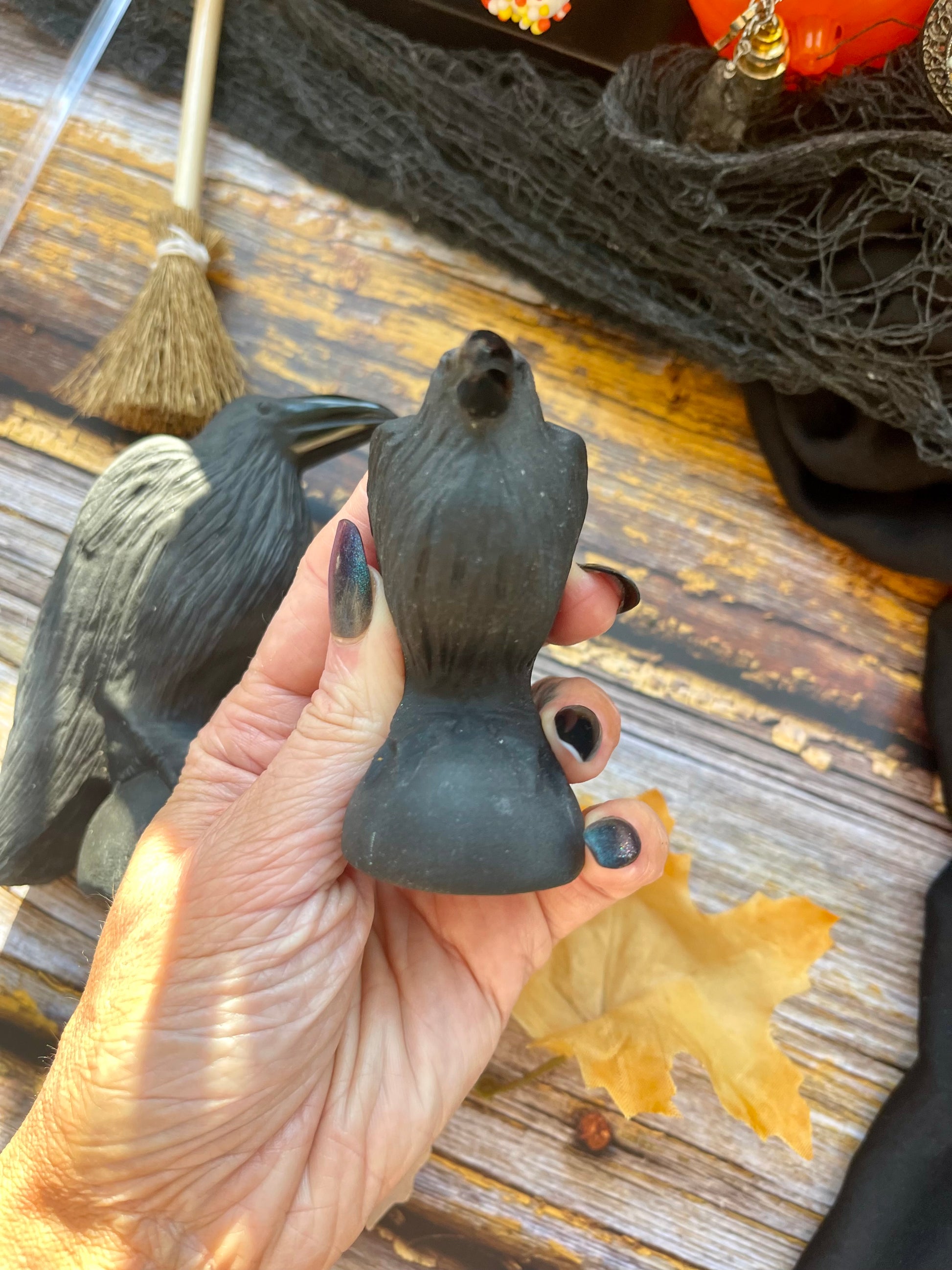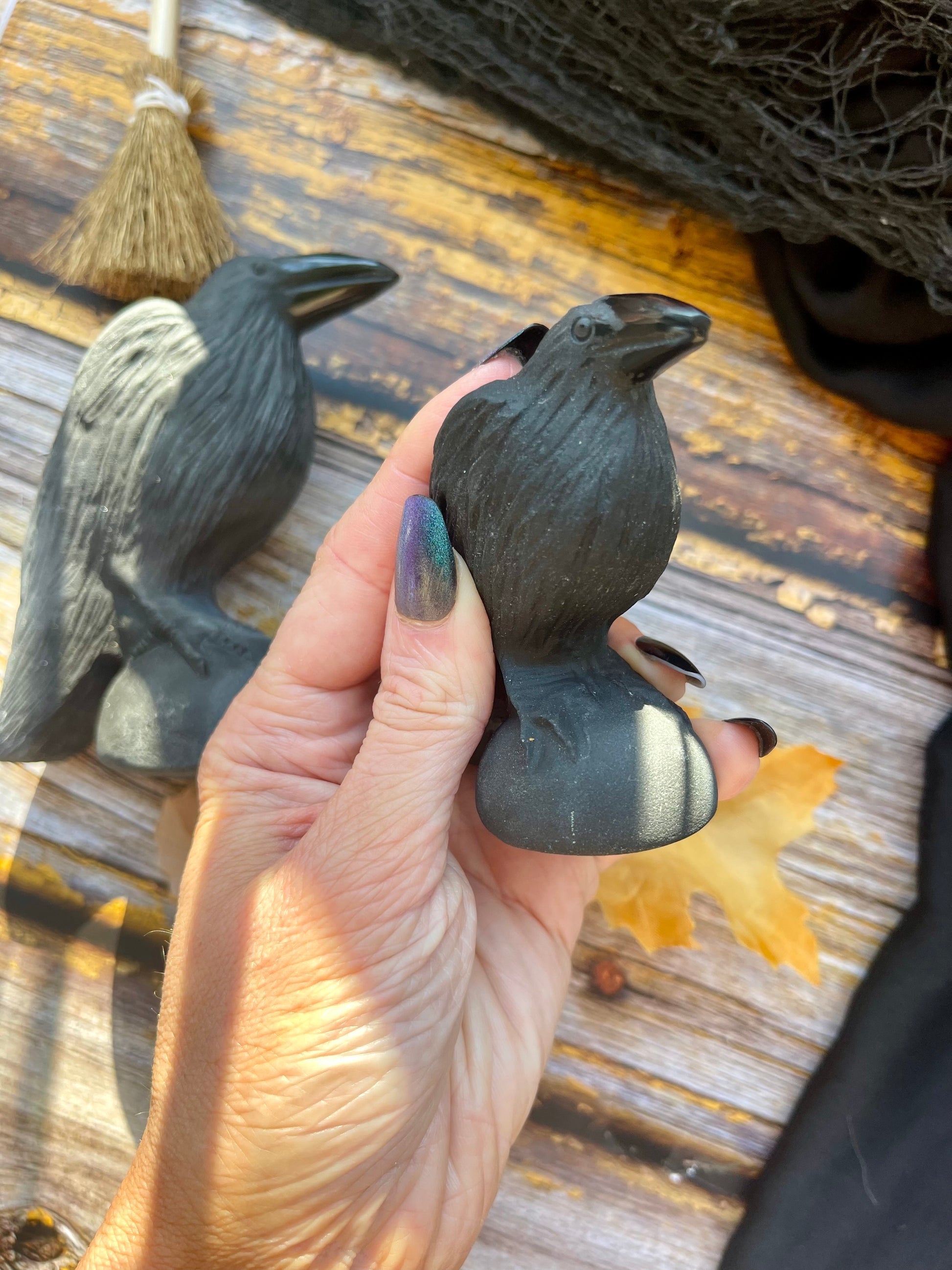 These are my absolute favorite and yours too! I can hardly keep them in stock! Add a touch of dark elegance to your decor with a Black Obsidian Raven. This beautiful obsidian carving features a playful raven design, perfect for those with a love for the spooky and unusual. With its sleek black color and stunning craftsmanship, it's sure to be a conversation starter in any room.