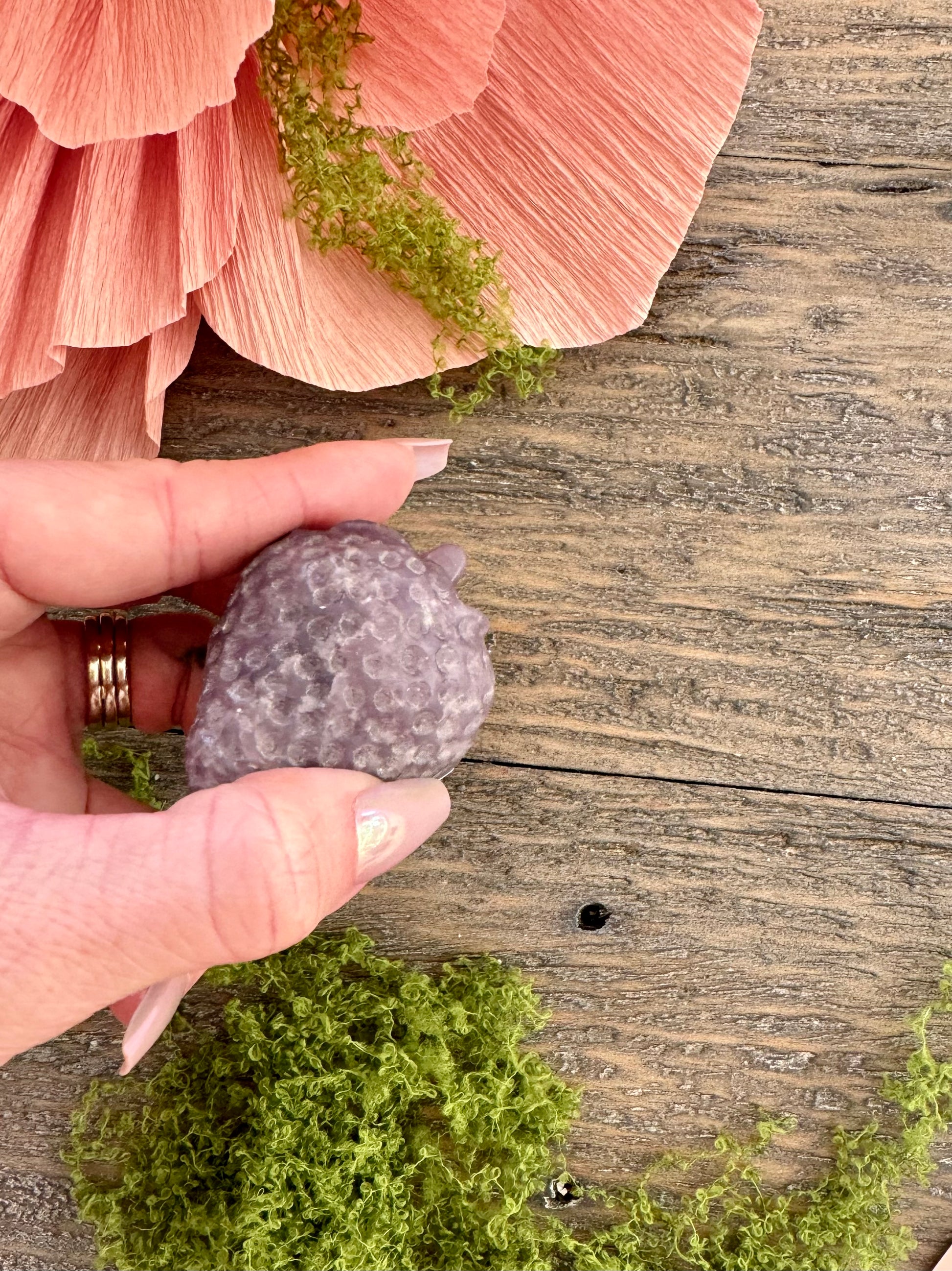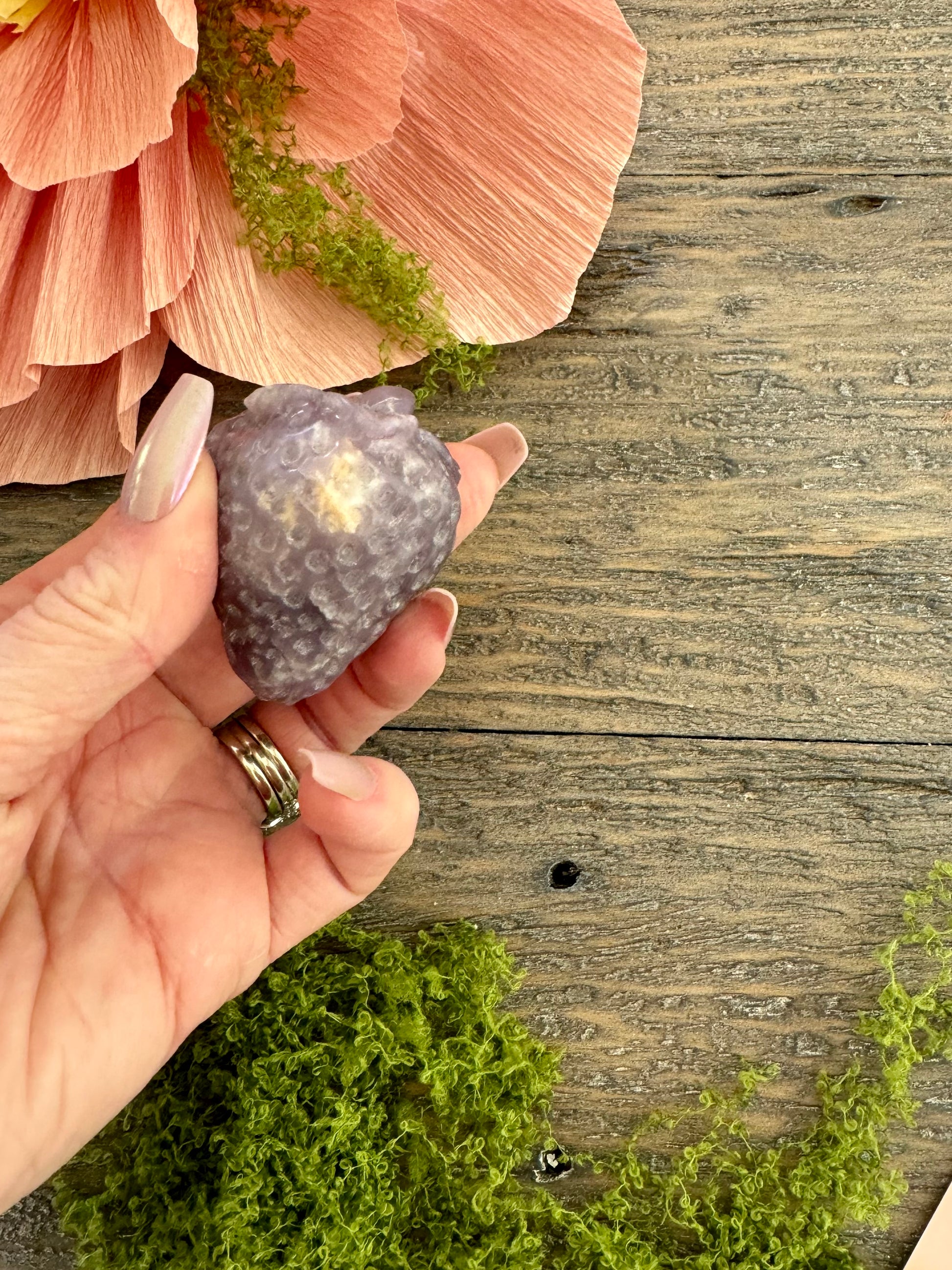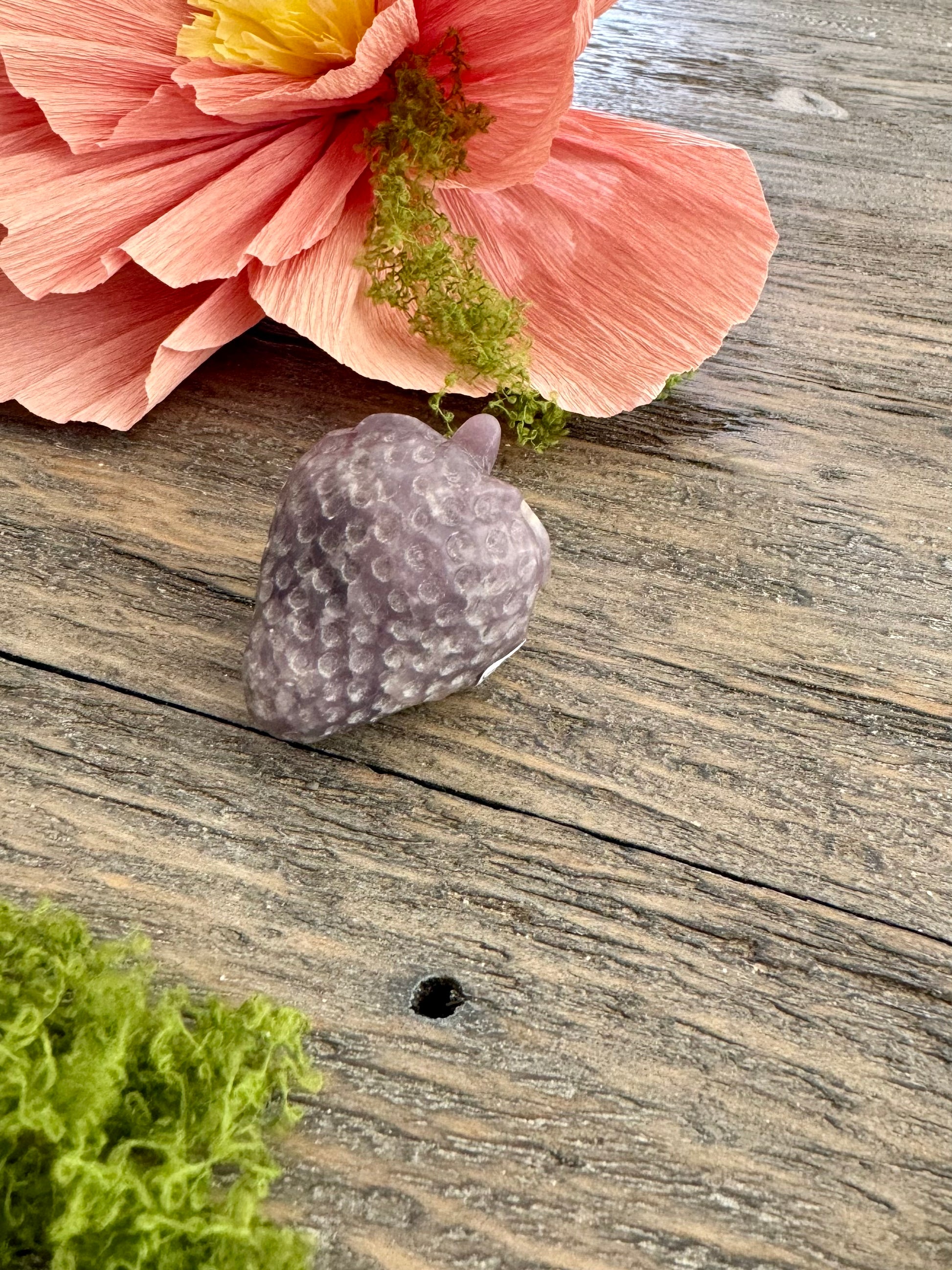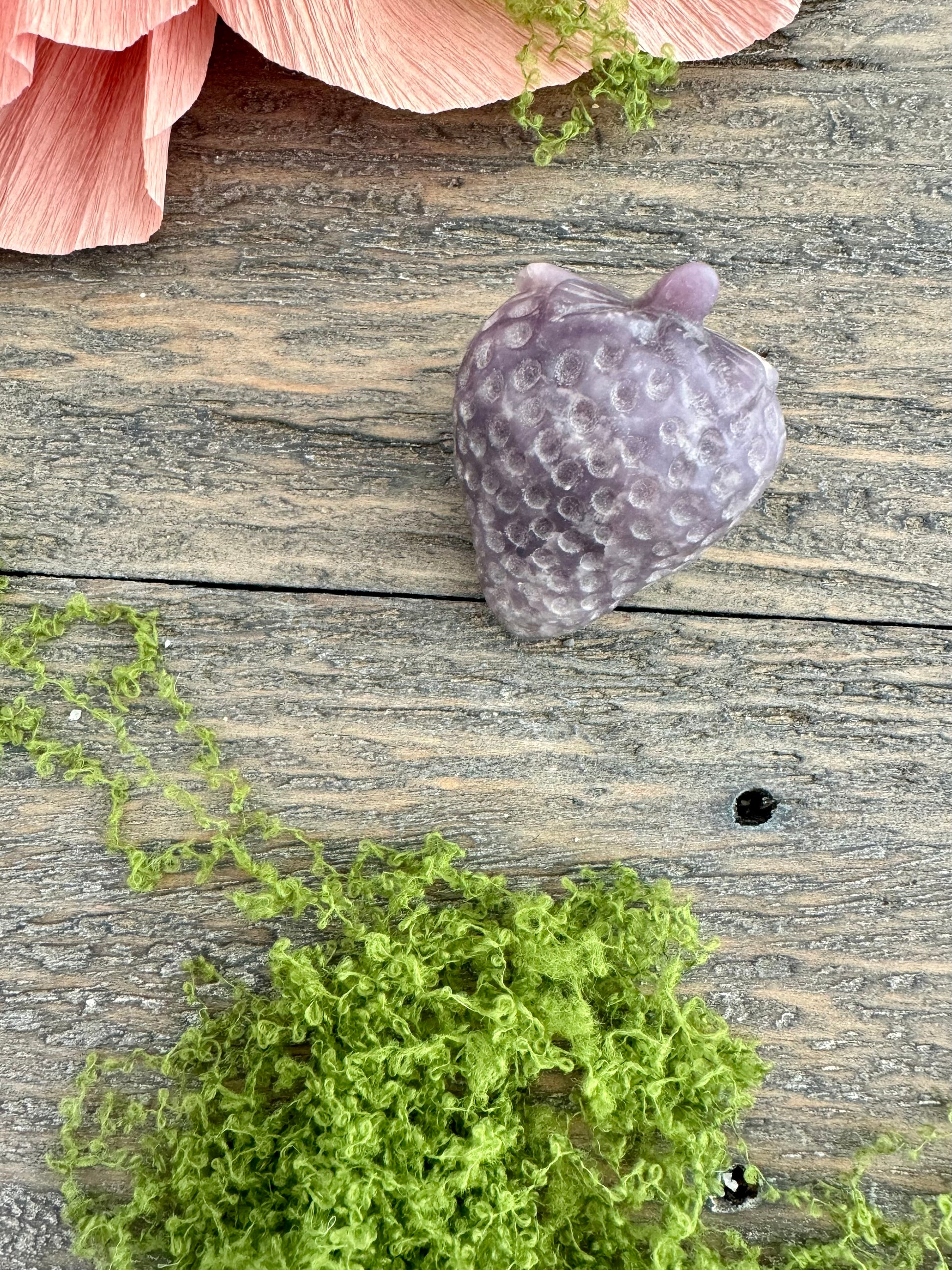 Transform your space with our Lepidolite Strawberry Carving. This unique piece combines the calming properties of lepidolite with the playful shape of a strawberry, adding a touch of whimsy to any room. Perfect for those looking to add some fun and relaxation to their home decor.