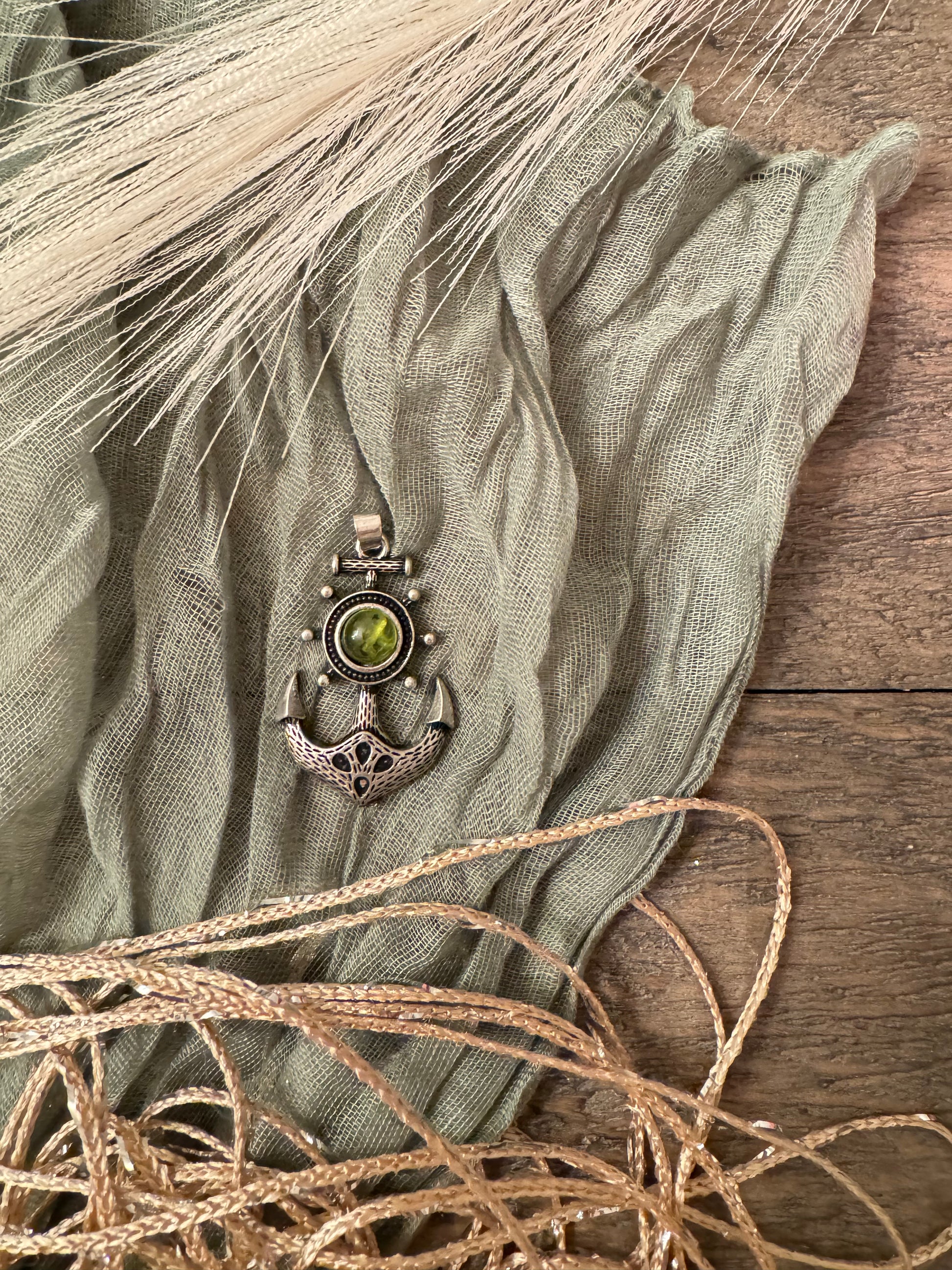This Peridot Anchor Pendant is crafted with exquisite detailing and symbolizes strength and stability. Made with Peridot, known for its healing properties, this pendant also offers potential benefits to the wearer, such as promoting good health and well-being. A perfect addition to any jewelry collection.
